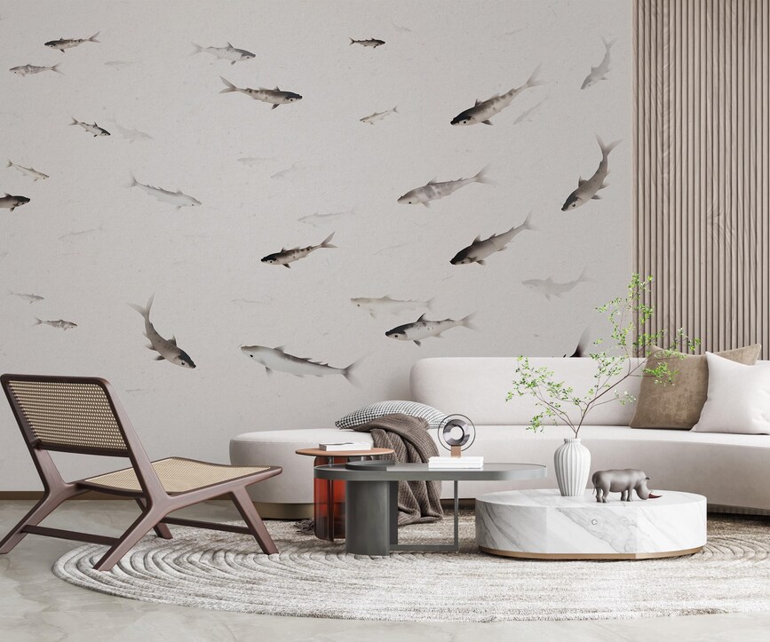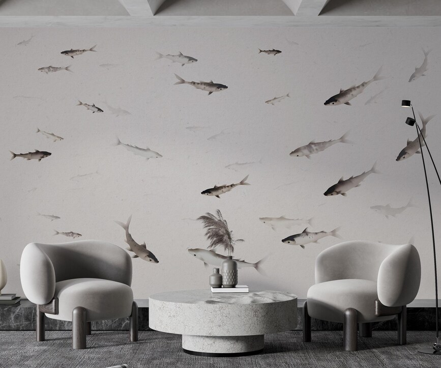 Fishes Wallpaper Mural, Sea Chinoiserie Wallpaper