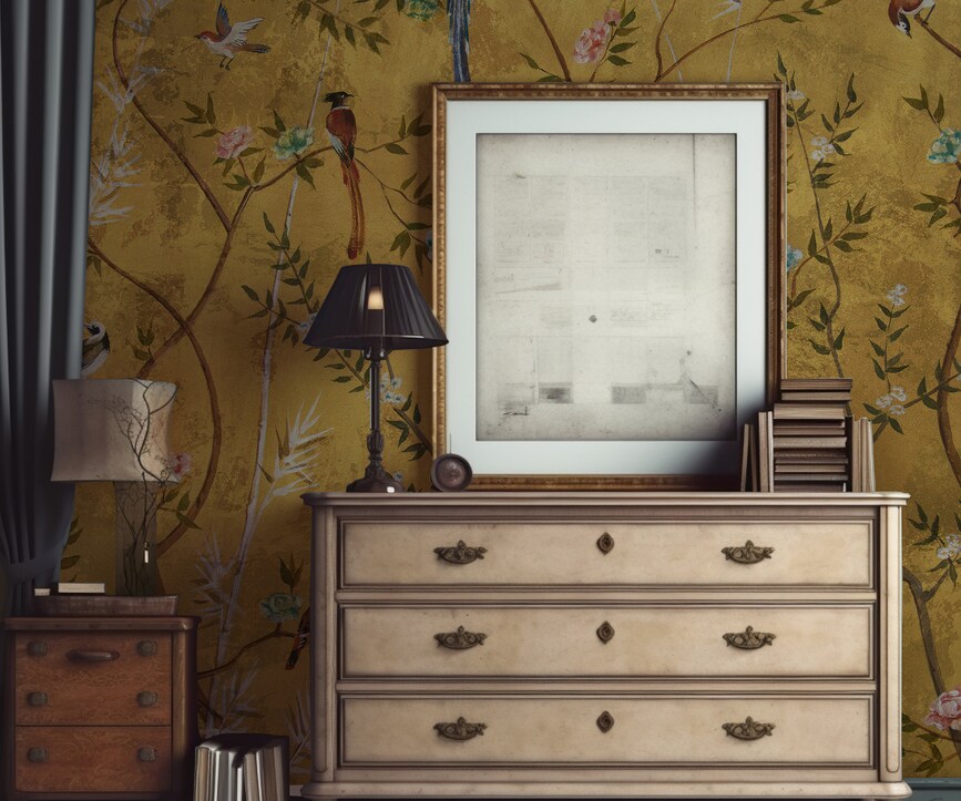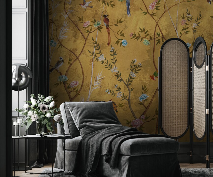 Be the first to review “Floral Bird Wallpaper Mural Gold Botanical” Cancel reply