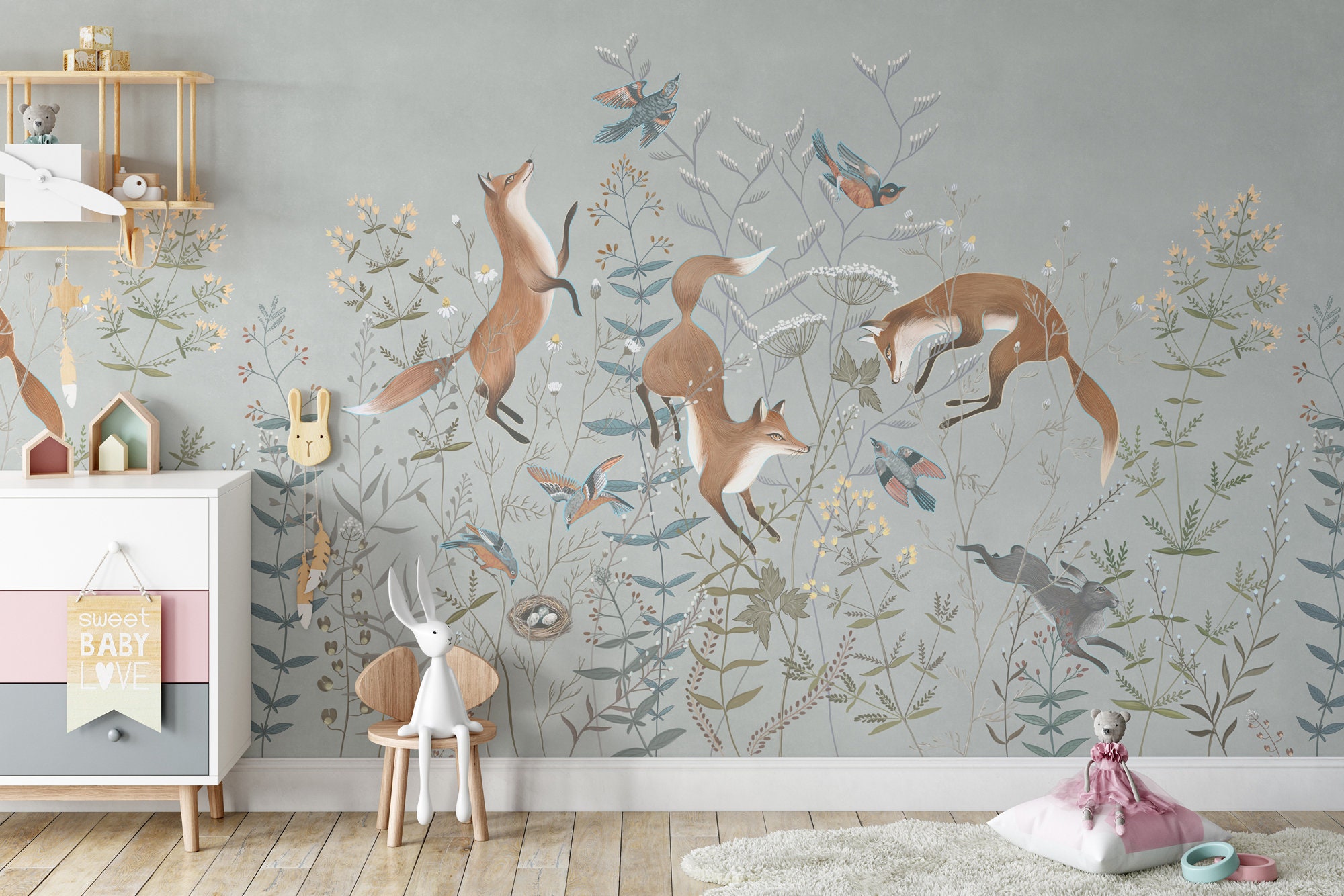 Fox Wallpaper: Woodland Animal Bird Mural,