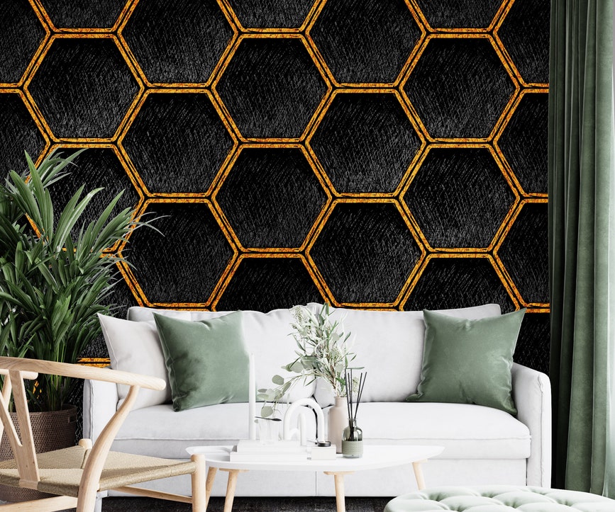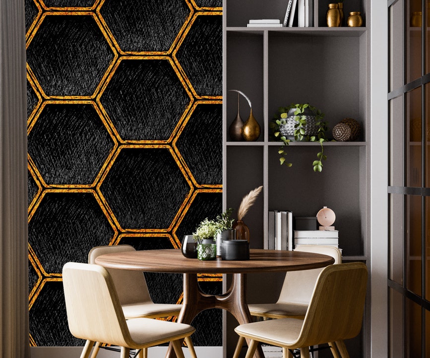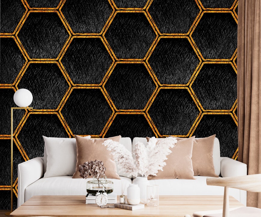 Be the first to review “Golden Art Deco Geometric Wallpaper Black Hexagon Mural” Cancel reply
