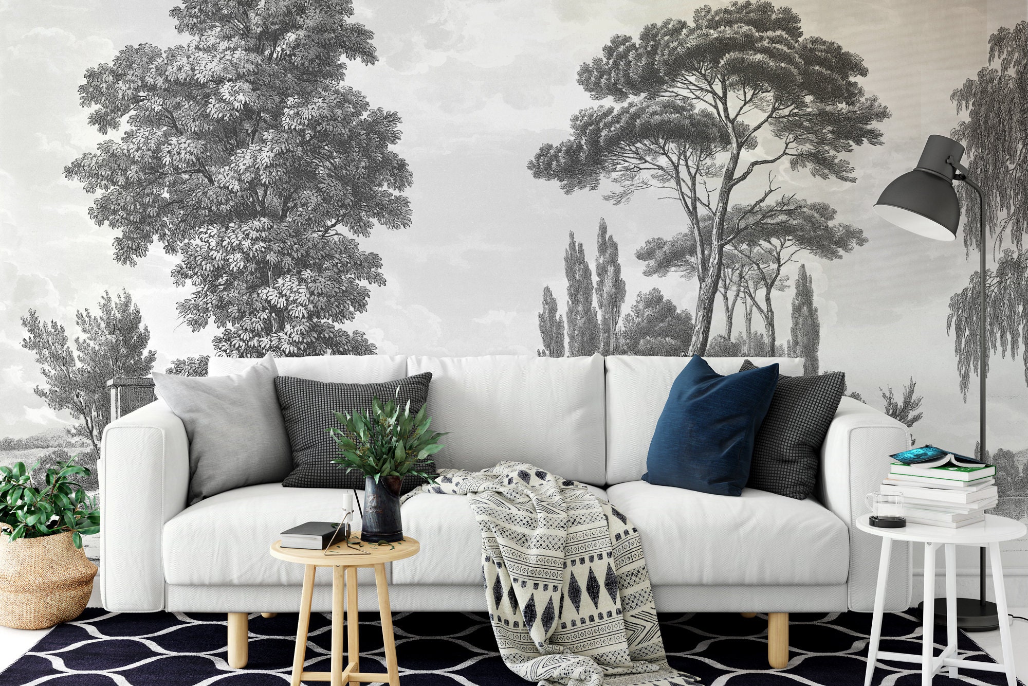 Grisaille Pines Forest Wallpaper Mural: Temporary Wall Decor