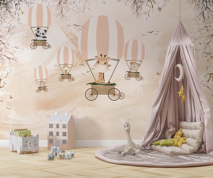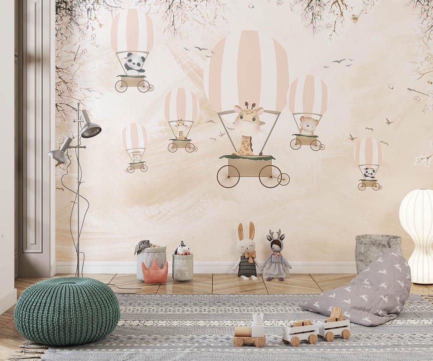 Hot Air Balloon Animals Wallpaper Mural Child Room Decor