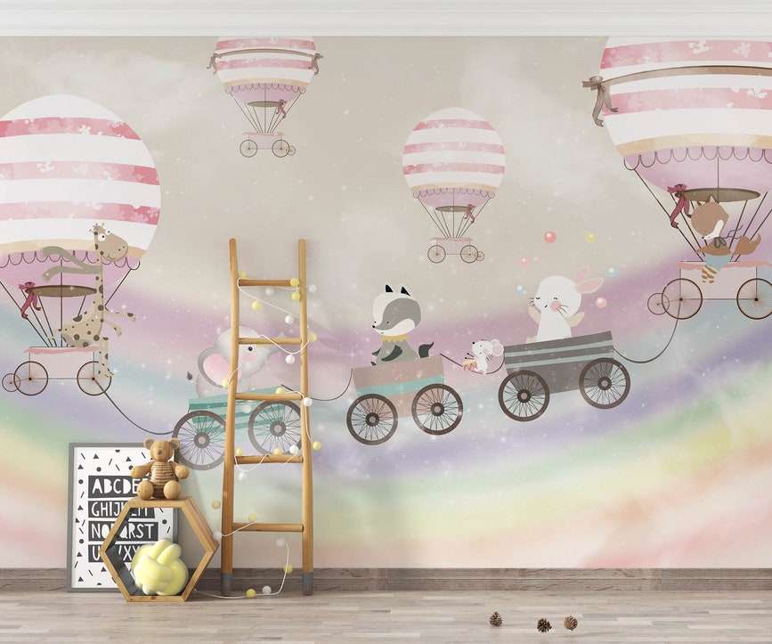 Hot air balloon wall Sky wallpaper Kids mural art