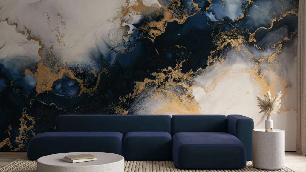 Indulge in artistic opulence with our blue abstract Rococo wallpaper mural. This striking fusion of modern abstract design and classic Rococo motifs serves as a captivating centerpiece, transforming your space. The dynamic interplay of vibrant blues and intricate patterns evokes a sense of energy, making it an ideal choice for infusing a bold accent into your interior.
