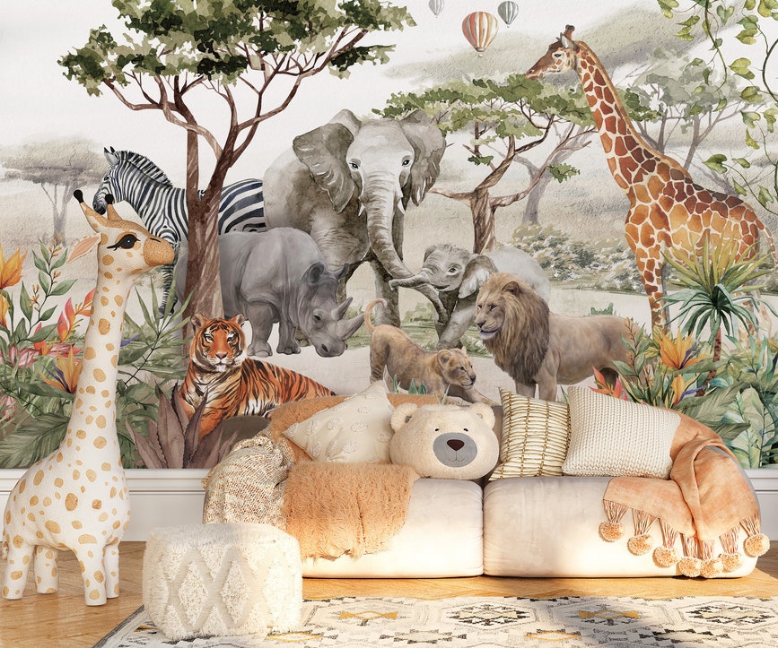 Kids Wallpaper Mural Hot Air Balloon Animals