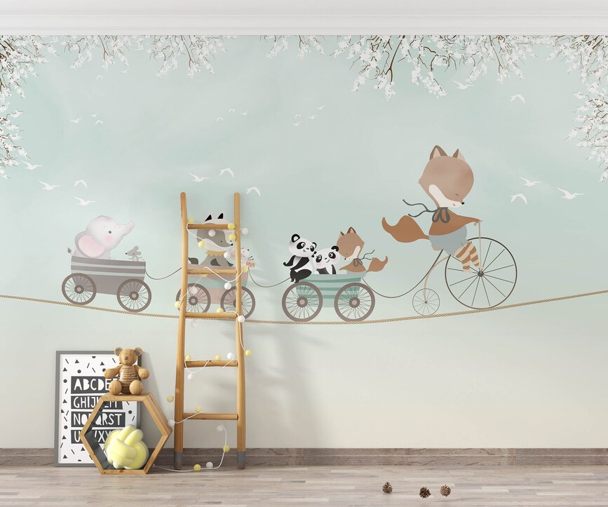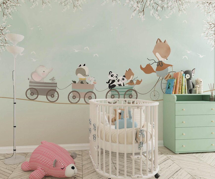 Kids Room Mural Sweet Safari Animals Wallpaper