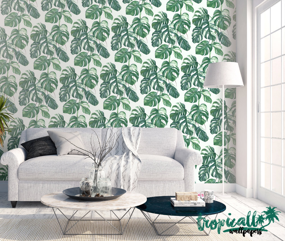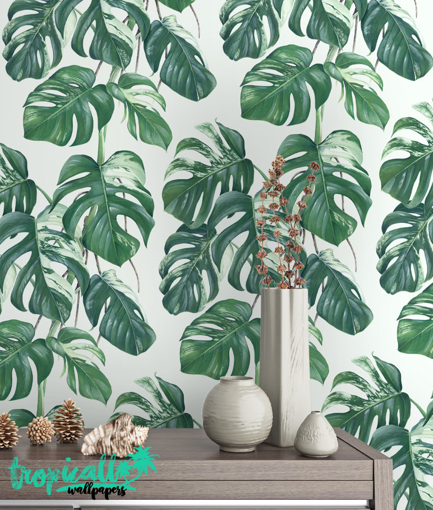 Monstera Leaf Print Wallpaper: Tropical Wall Art