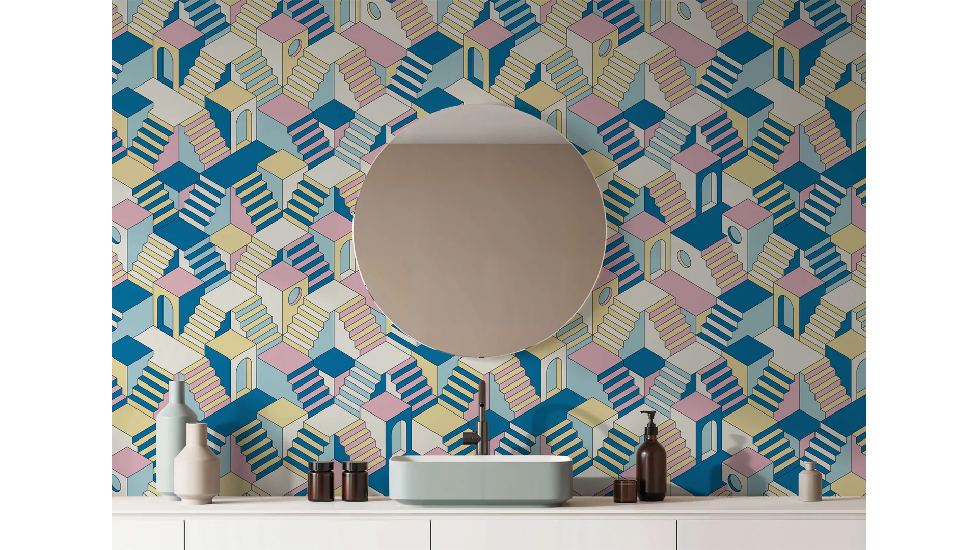 ?Mezze? is a vibrant, graphic wallpaper designed for those seeking a unique aesthetic. It offers a refreshing alternative for individuals who wish to incorporate an outdoor ambiance into their space while embracing a more urban style.