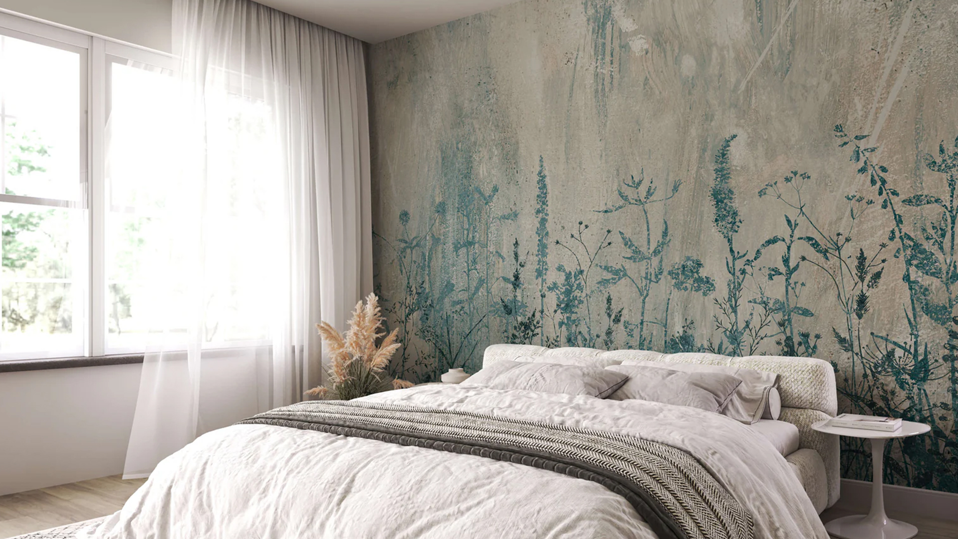 The Mia wallpaper mural presents a striking and avant-garde design, featuring a grunge-inspired abstract depiction of wildflowers. Its floral arrangement is distinguished by bold brushstrokes, rough lines, and a rich layering of textures. This mural infuses any room with a sense of rebelliousness and free-spiritedness, imparting a unique and artistic ambiance. It is ideal for those looking to create a statement wall or enhance their space with a touch of creativity. The Mia design is a quintessential choice for individuals who appreciate unconventional and daring aesthetics.