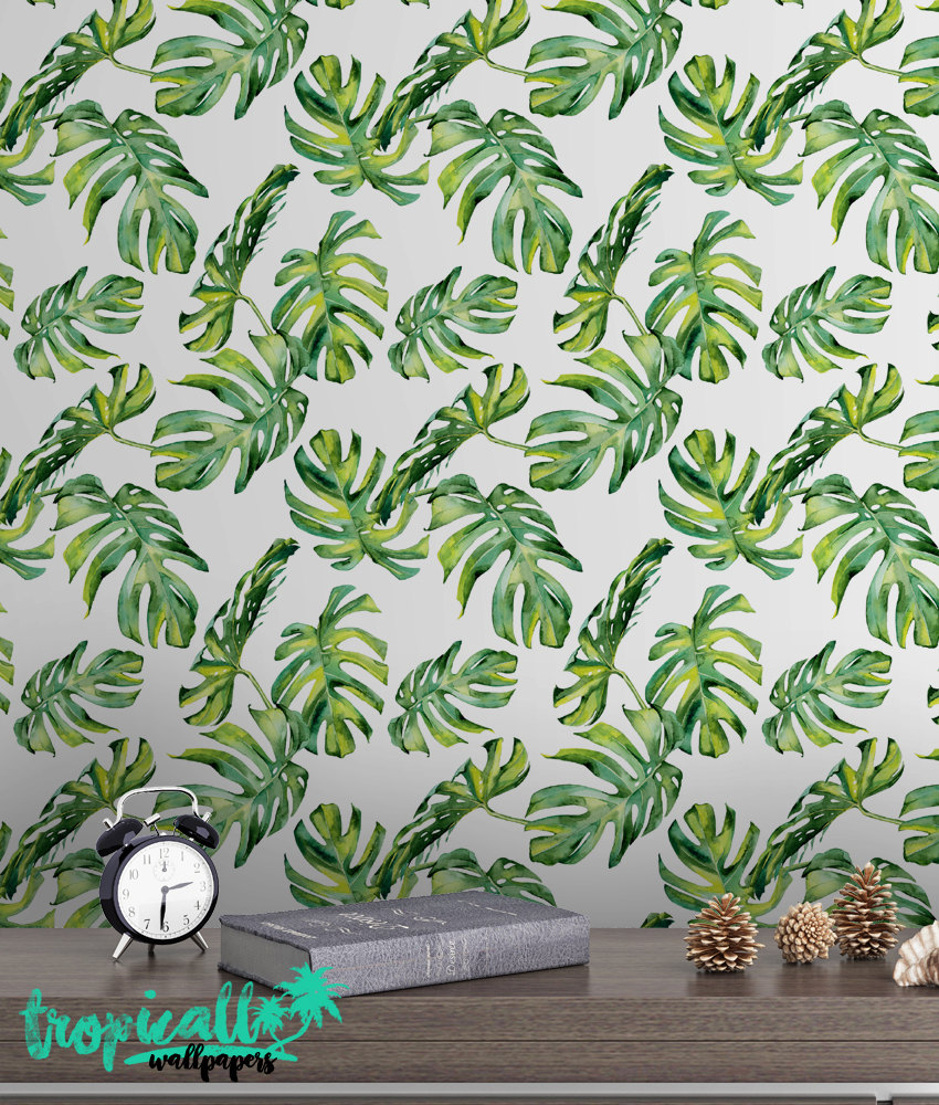 Monstera Leaf Wallpaper: Watercolor Floral