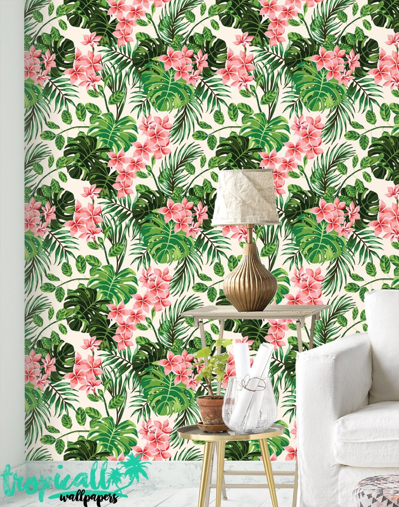 Monstera Palm Wallpaper: Tropical Floral Wall Decal