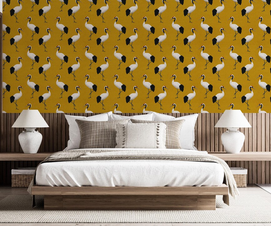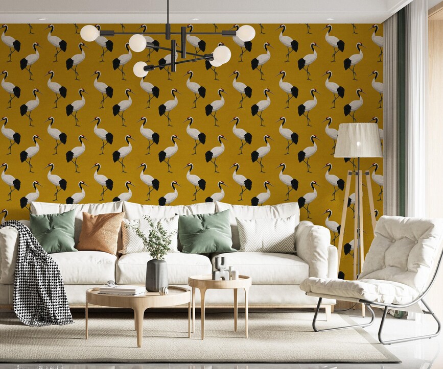 Be the first to review “Mustard Yellow Wallpaper with Heron Pattern” Cancel reply