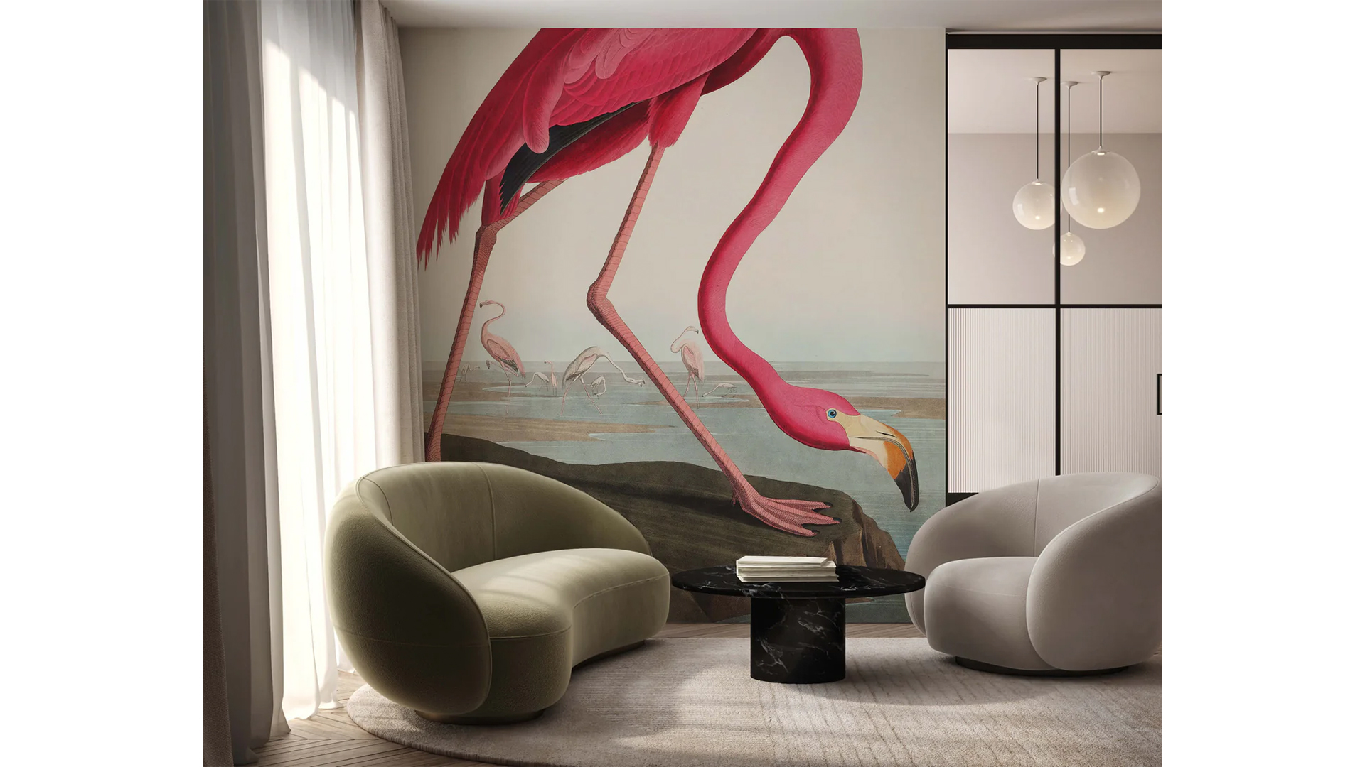 The American Flamingo featured here is part of our “Birds of America” collection, which highlights the illustrations of 19th-century naturalist and artist John James Audubon?a figure renowned for his contributions to bird conservation in the United States. This design is richly detailed and will impart a bold yet tranquil ambiance to any space in which it is displayed.