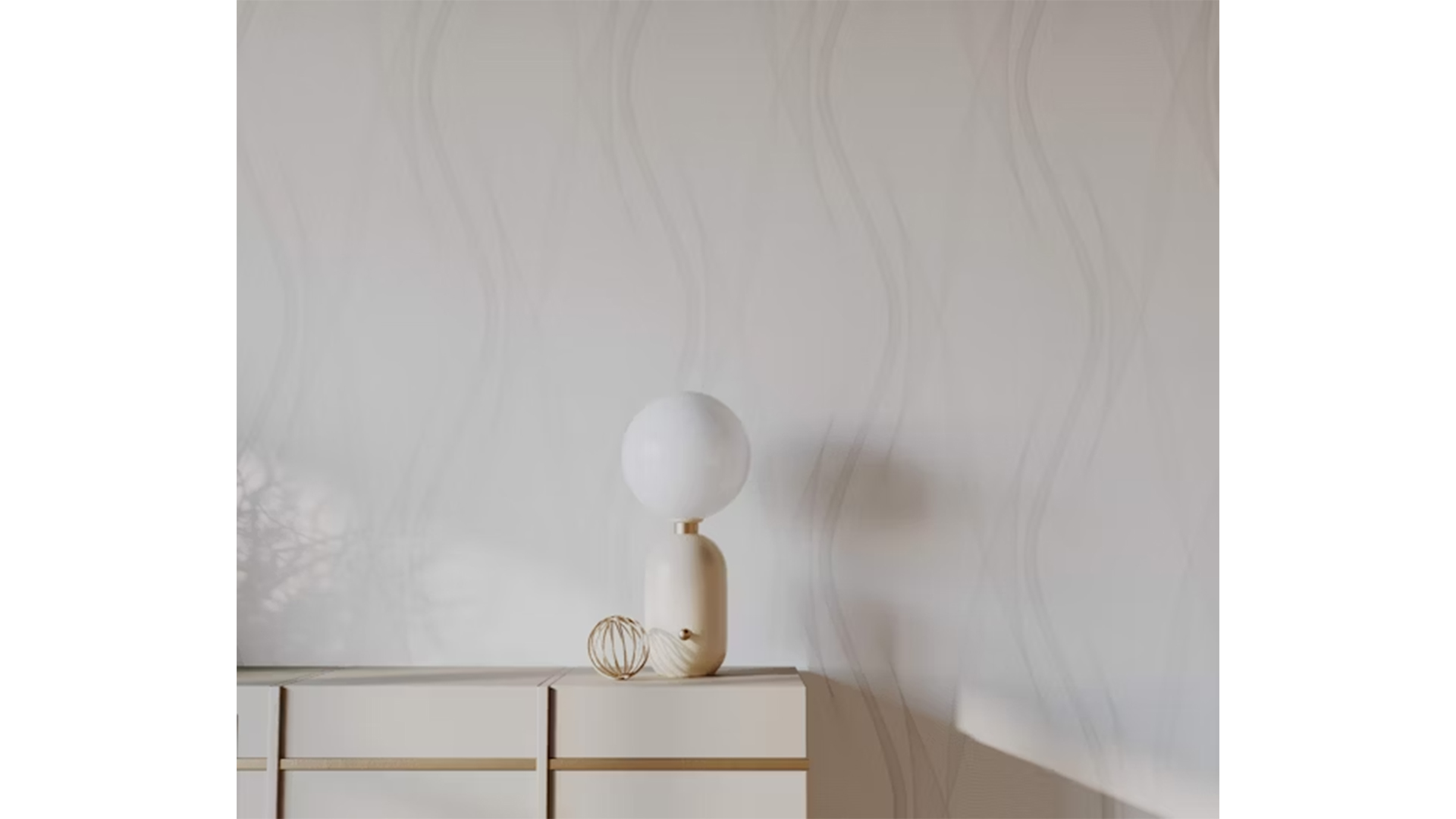 This captivating wave design features custom 3D-printed gears inspired by the classic Spirograph toy. Comprising thousands of fine lines, it creates a detailed yet understated pattern. Its subtlety makes it ideal for larger areas, while its modern aesthetic complements contemporary spaces. The product was designed by Nicholas Baker as part of the Metaverse 2.0 collection.