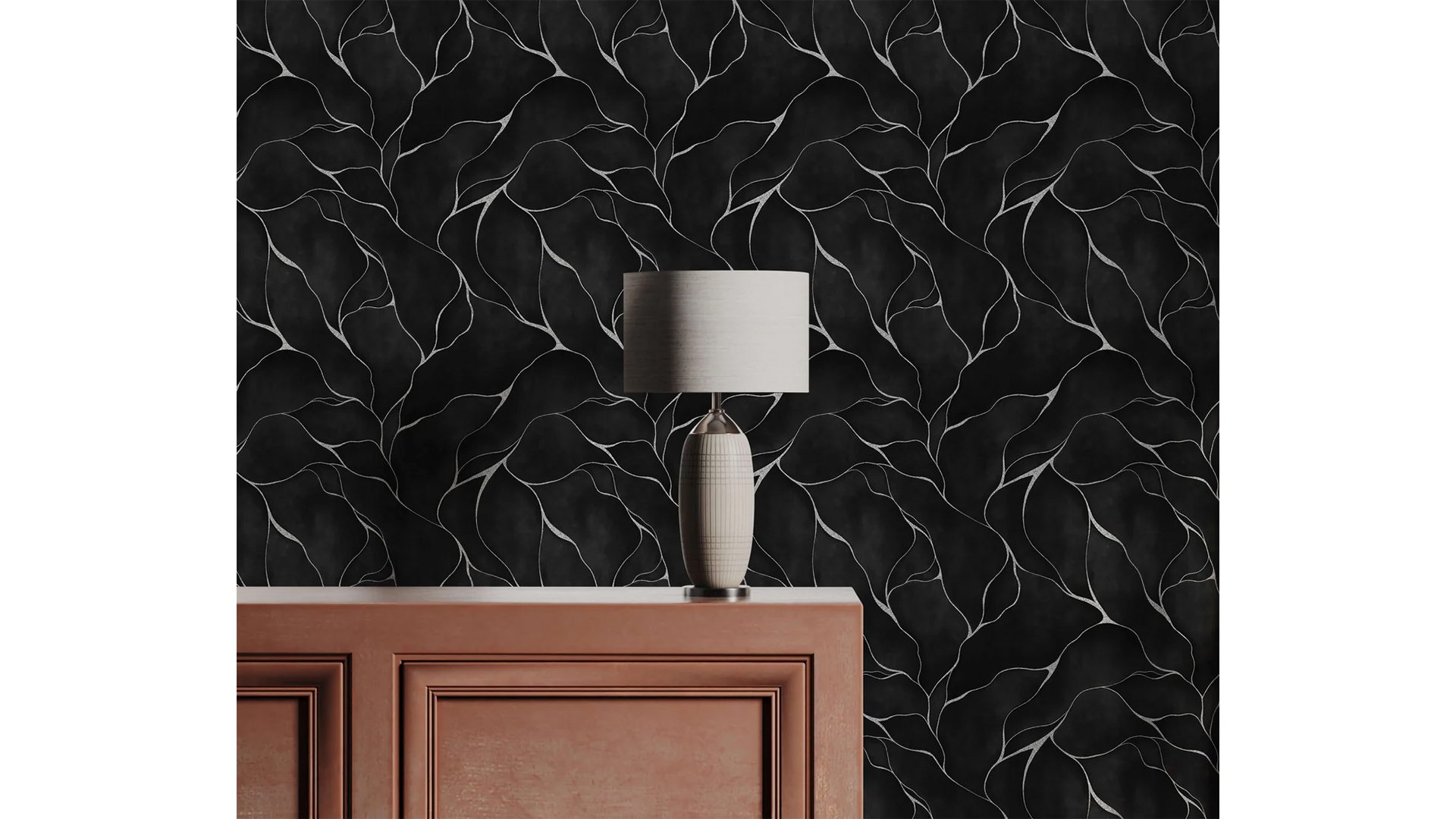This abstract design is characterized by meandering lines reminiscent of the traditional Japanese art of Kintsugi. Kintsugi is a technique whereby broken pottery is repaired with lacquer infused with gold, silver, or platinum. The philosophy behind Kintsugi emphasizes celebrating the cracks and repairs as integral elements of the object’s history and beauty, rather than attempting to disguise them. This design draws inspiration from Kintsugi, resulting in a compelling abstract wallpaper that invites appreciation for imperfection.