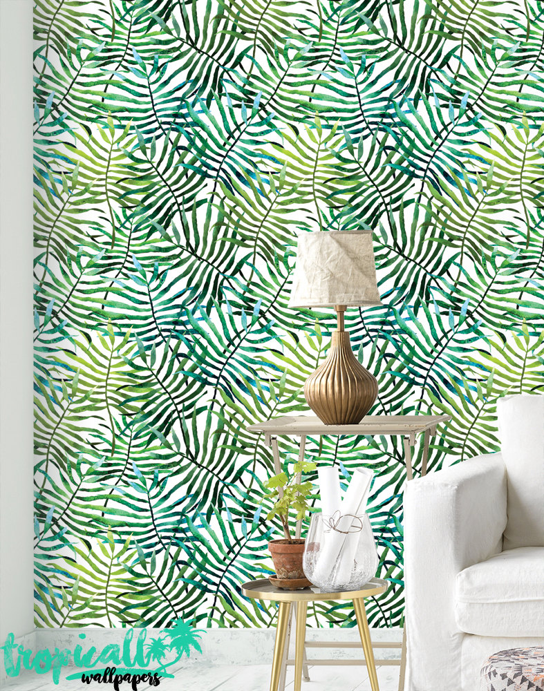 Palm Leaf Pattern Removable Wallpaper: Tropical Wall Decor