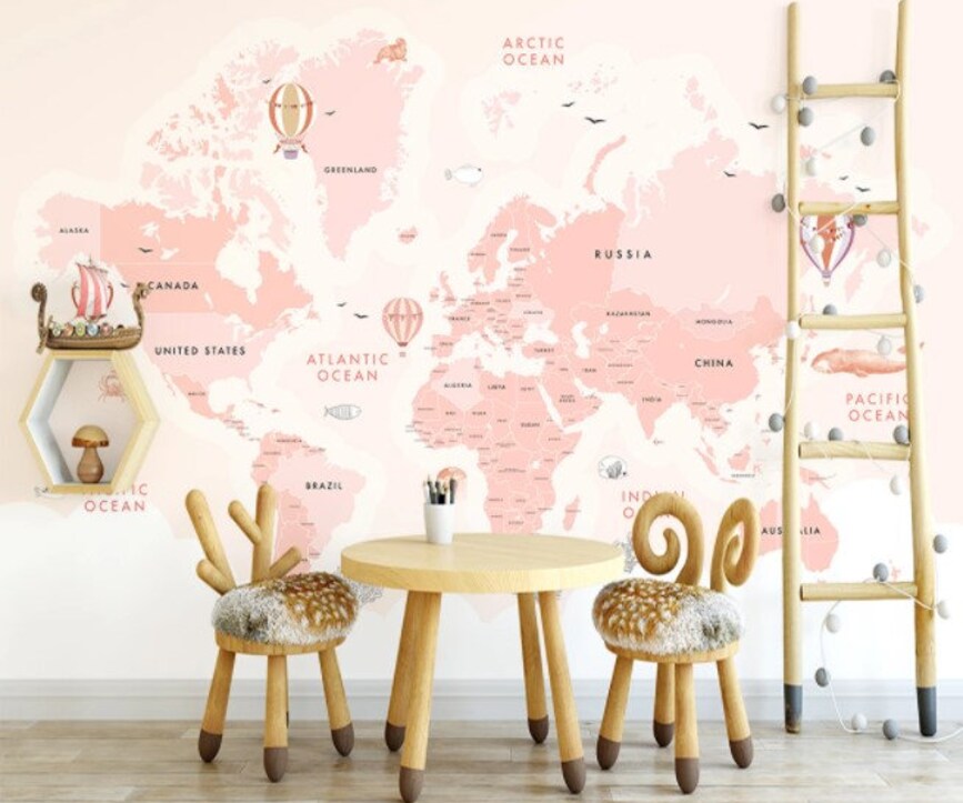 Be the first to review “Pink World Map Wallpaper Kids Nursery Wall Mural” Cancel reply
