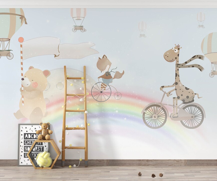 Rainbow Kids Wallpaper Mural Bear Fox Giraffe