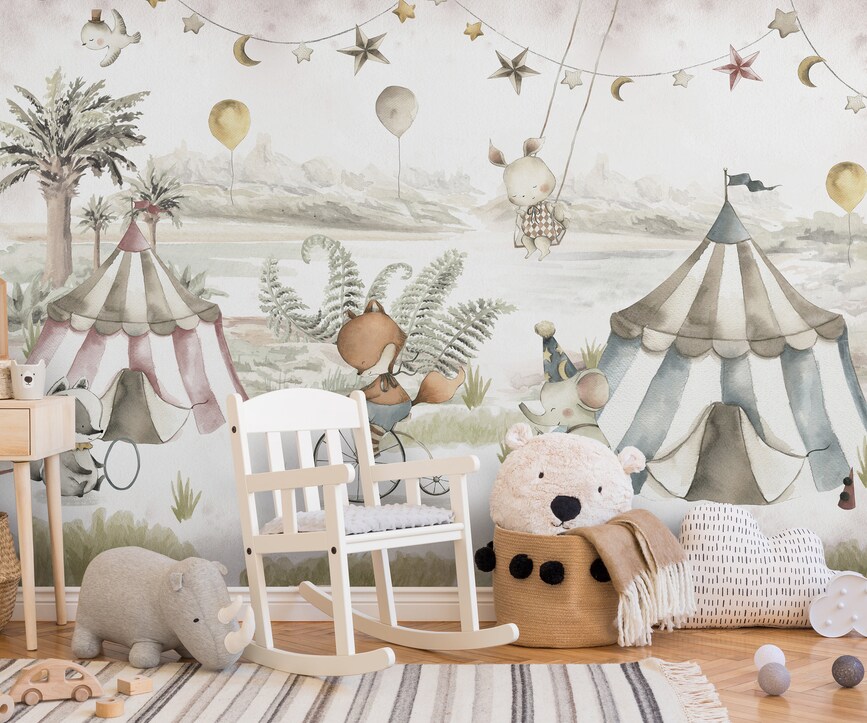 Green Mountain Nursery Mural Hot Air Balloons Wallpaper