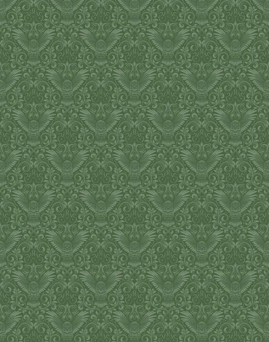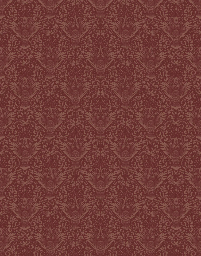 Elevate your living space with an air of regality through our damask-style owl wallpaper. This design seamlessly blends the timeless elegance of a damask pattern with the enchanting allure of owls, resulting in a wall covering that radiates sophistication and character.
