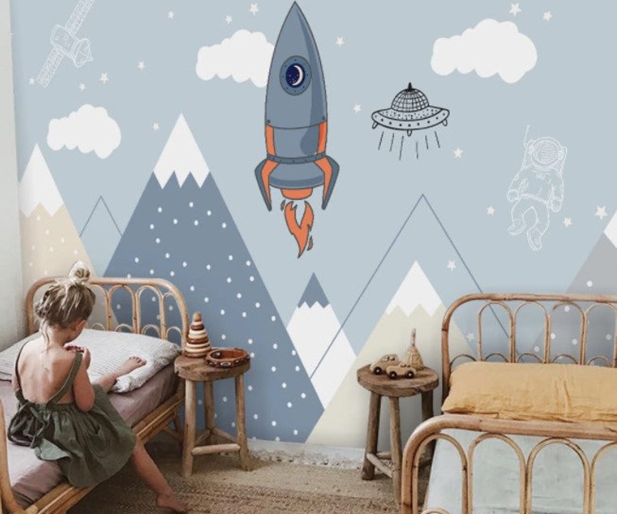 Rocket Galaxy Kids Wallpaper Mural Nursery Decor