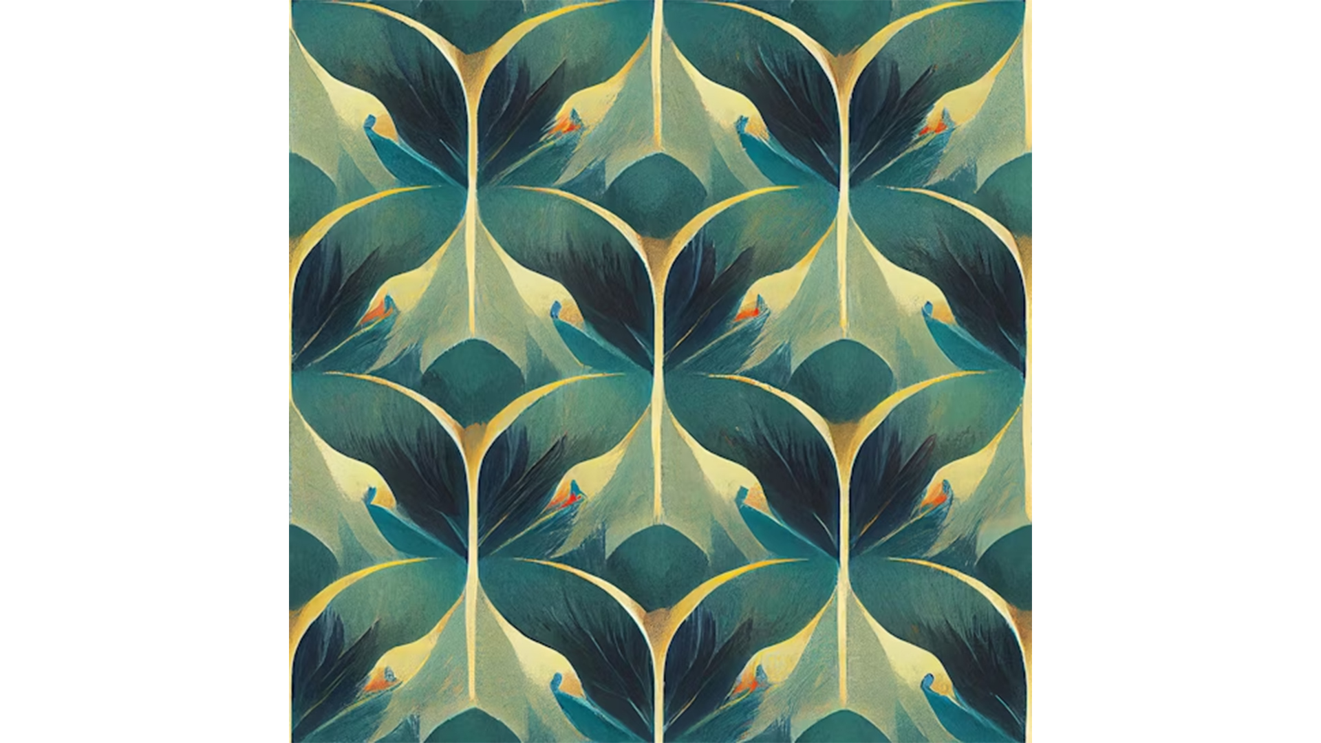This wallpaper showcases an abstract design characterized by hand-painted motifs inspired by mountain ranges. While its shape and composition draw from traditional Art Deco styling, the painted effect adds a distinctive quality, making it a unique interpretation of that style.