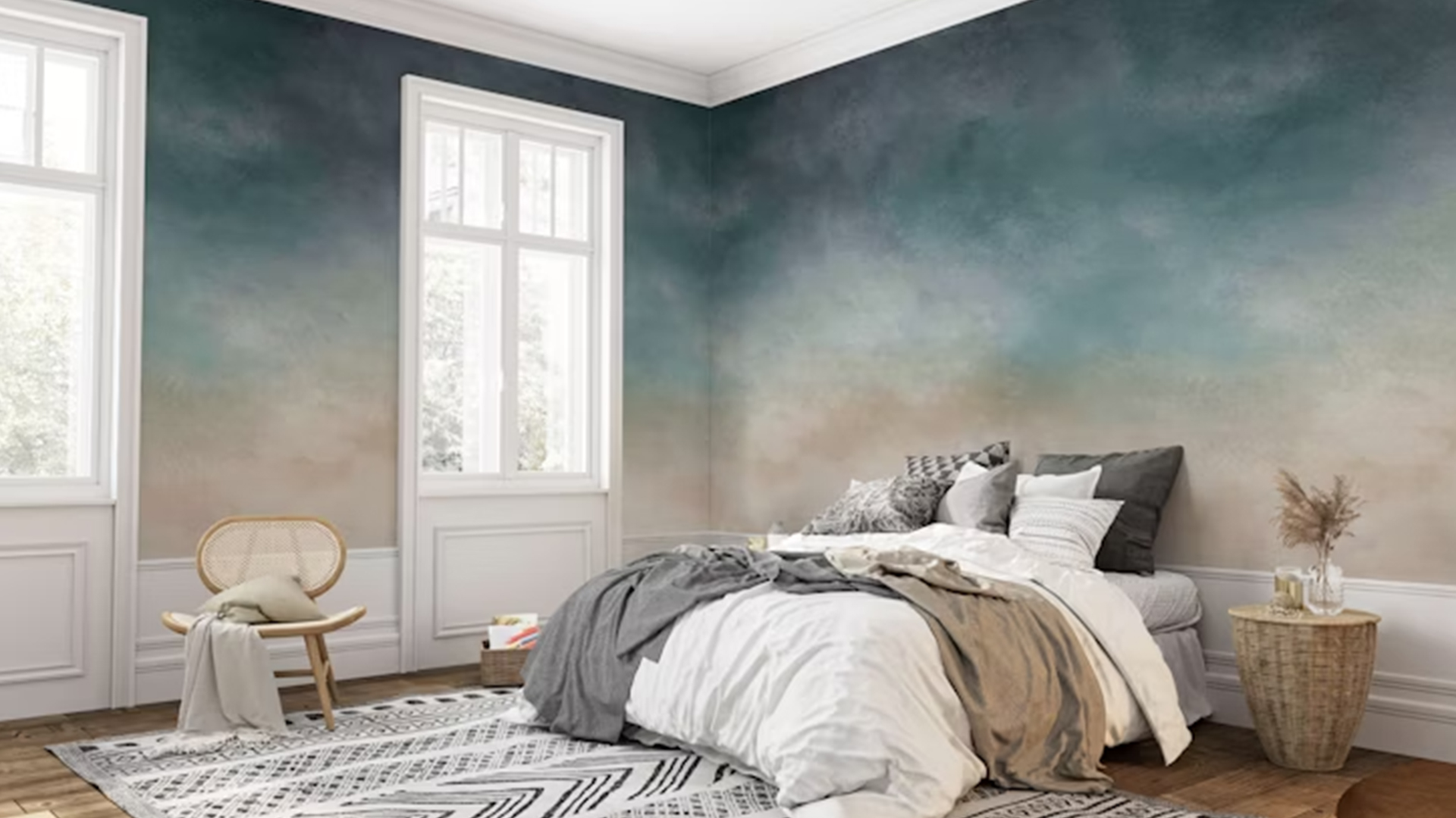 Transform your space into a tranquil sanctuary with our Romulus ombre wallpaper mural. Inspired by the ethereal Romulus clouds, this mural showcases a soft, blended ombre effect that cultivates a dreamy atmosphere in any room.