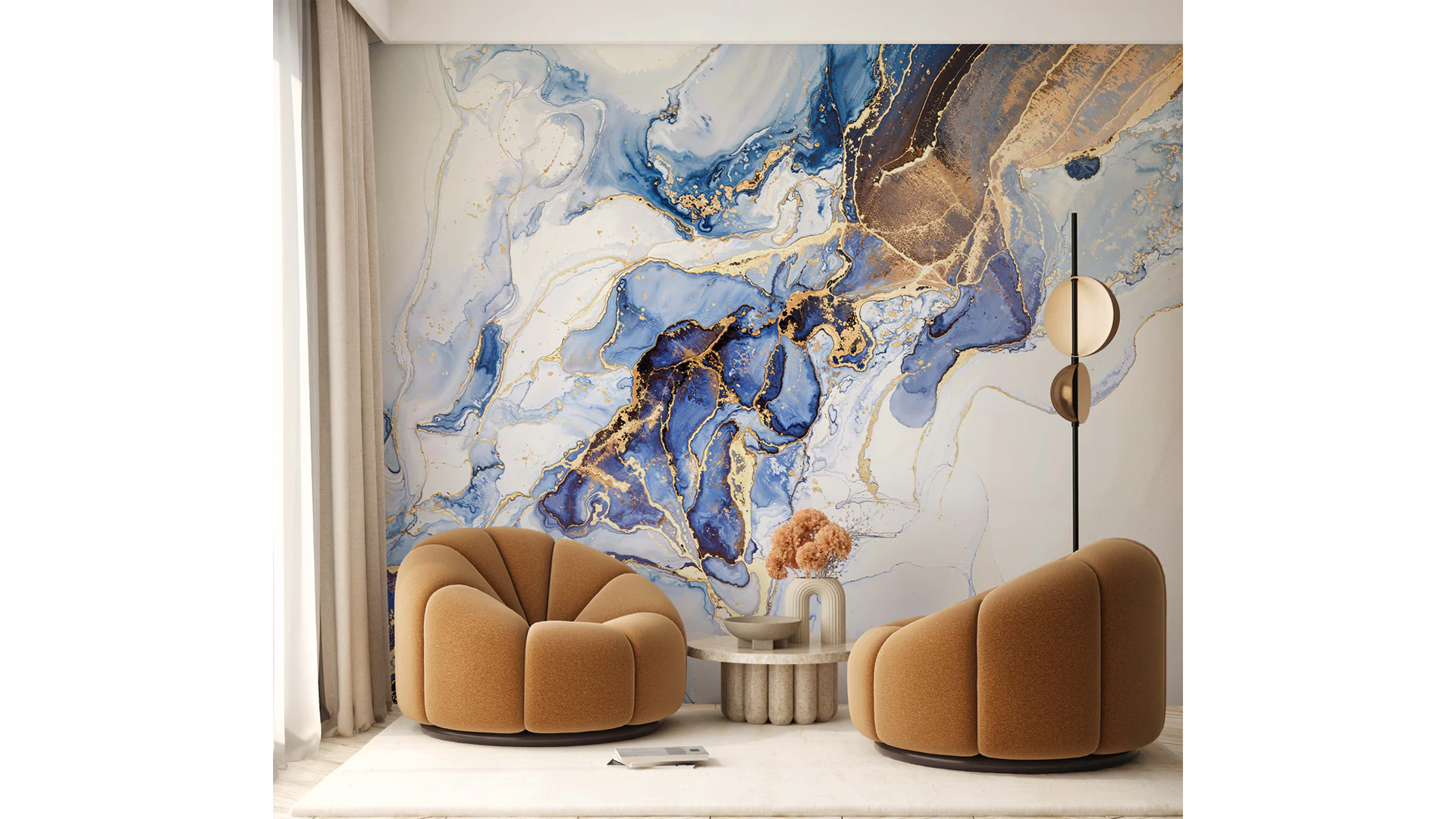 The fluid, swirling marble pattern mimics the natural beauty of marble, making it an ideal choice for adding a touch of opulence to your home. Perfectly complementing neutral furnishings, this mural serves as an exceptional enhancement for your bedroom, living room, or hallway.
