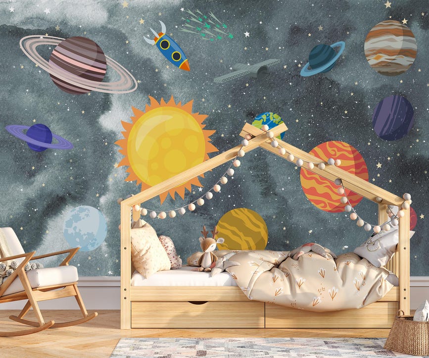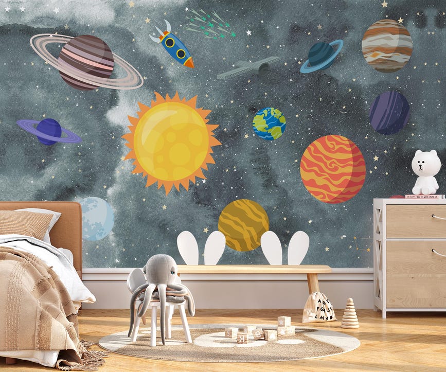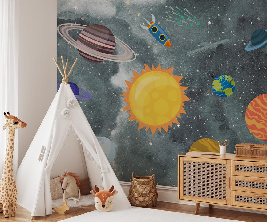 Space Nursery Wallpaper Mural Planets Astronaut