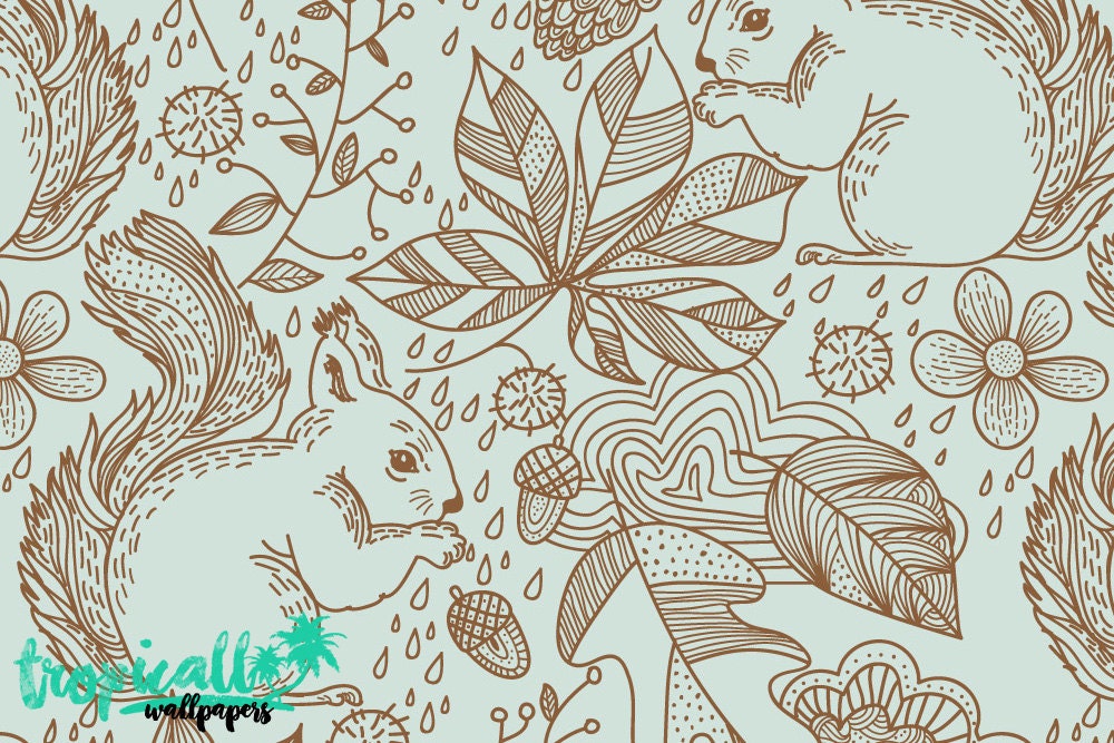 Squirrel & Forest Plants Removable Wallpaper – Exotic Wall Sticker