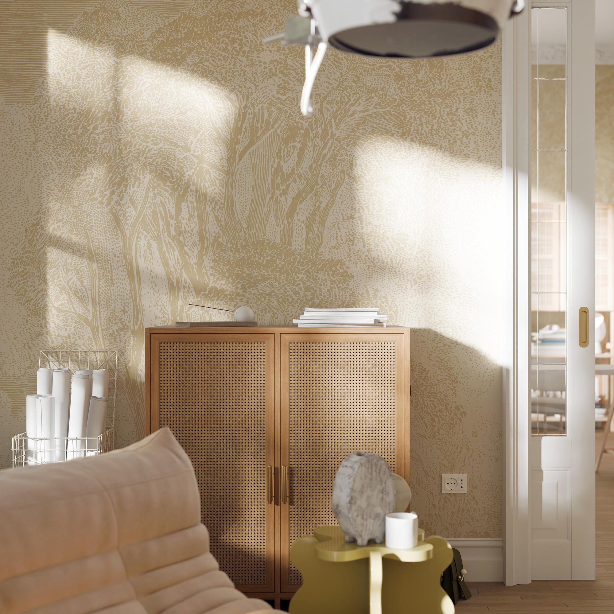 Tree Wallpaper ? Forest Line Art Wall Mural, Engraved Treetops Nature-Inspired Home D?cor