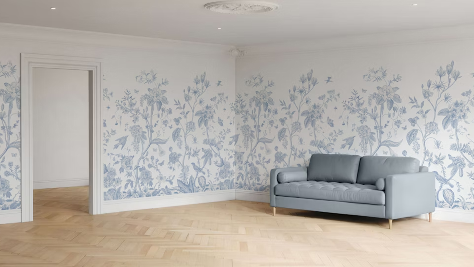 Enhance your walls with a touch of luxury through our ‘Tremonti’ mural wallpaper. This exquisite design features intricate florals and birds, beautifully complemented by an illustrious drawing style. The mural offers a dynamic visual experience, continually revealing new details to captivate the eye. With its charming vintage aesthetic infused with a modern twist, this mural embodies timeless elegance.