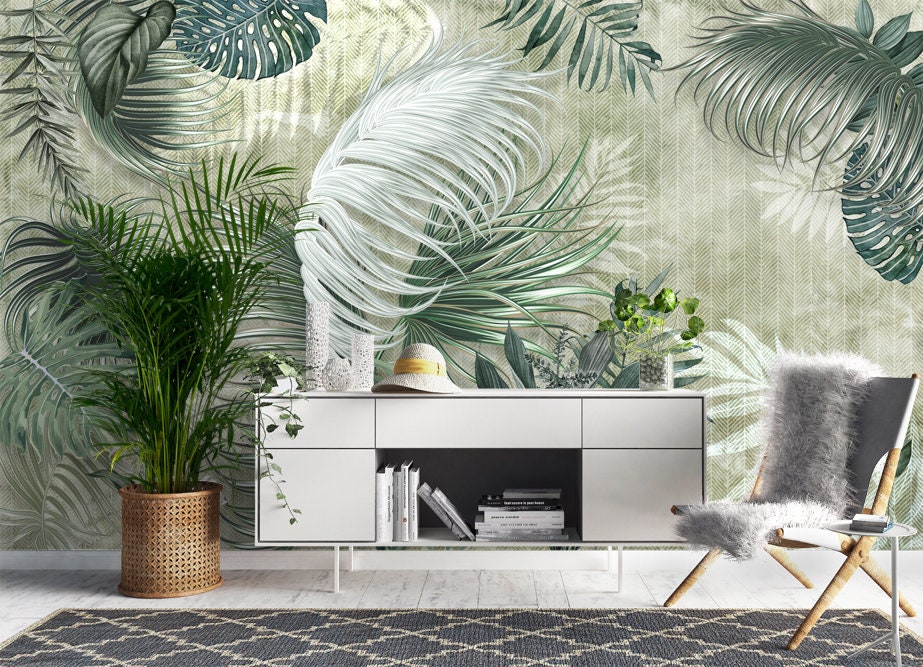 Tropical Palm Leaf Wallpaper: Removable Jungle Mural