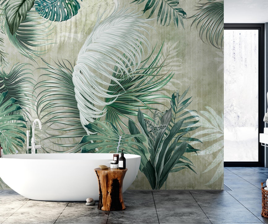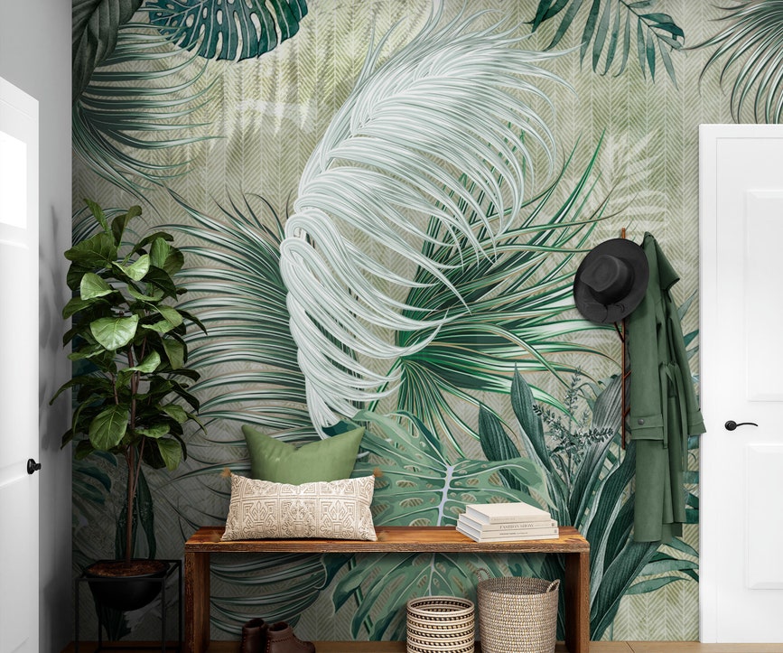 Be the first to review “Tropical Palm Leaves Wallpaper Green Wall Mural” Cancel reply