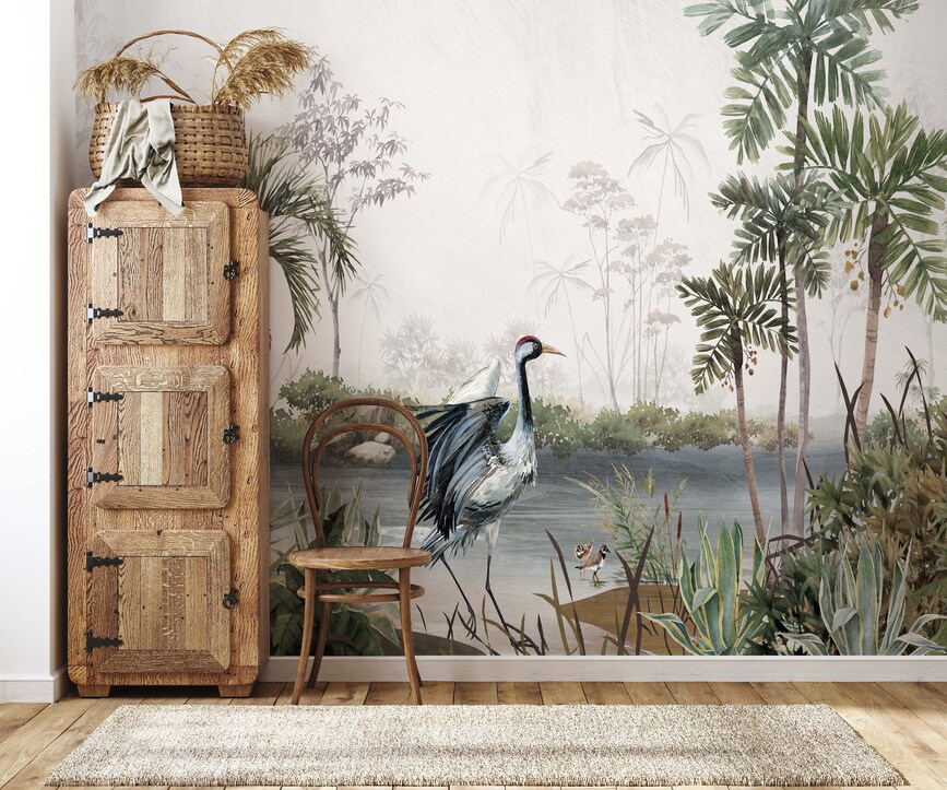 Tropical Palm Leaf Wallpaper Bird & Floral Wall Mural