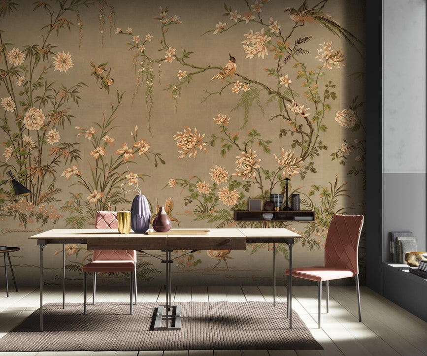 Crafted from high-quality canvas material, this wallpaper offers a luxurious texture and vibrant, long-lasting colors that enhance the beauty of your interiors.