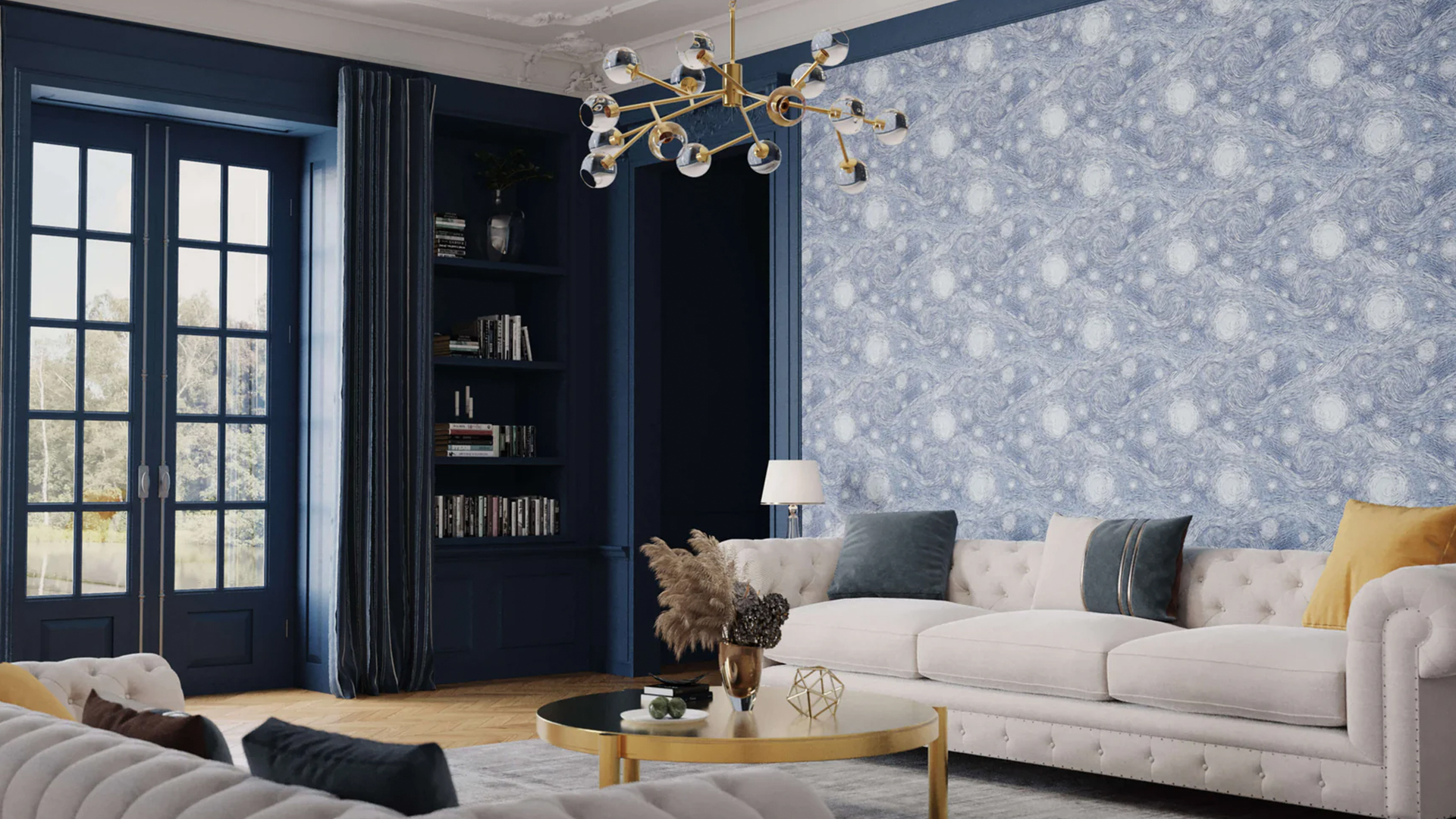 Our ‘Vincent’ design is a meticulously remastered interpretation of Vincent Van Gogh’s iconic artwork, Starry Night. This wallpaper features a rich palette and a textured, painted effect that preserves the artist’s authentic Impressionist style. Serving as a captivating conversation starter, the Van Gogh wallpaper is available in multiple color options, making it a versatile choice suitable for a variety of spaces.