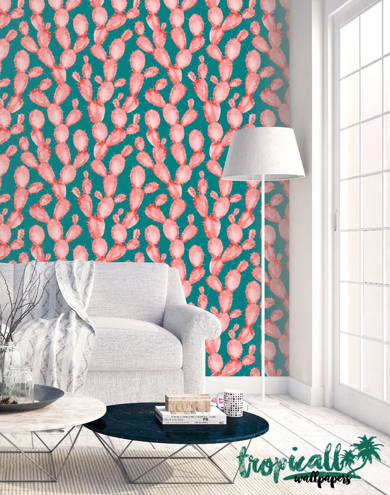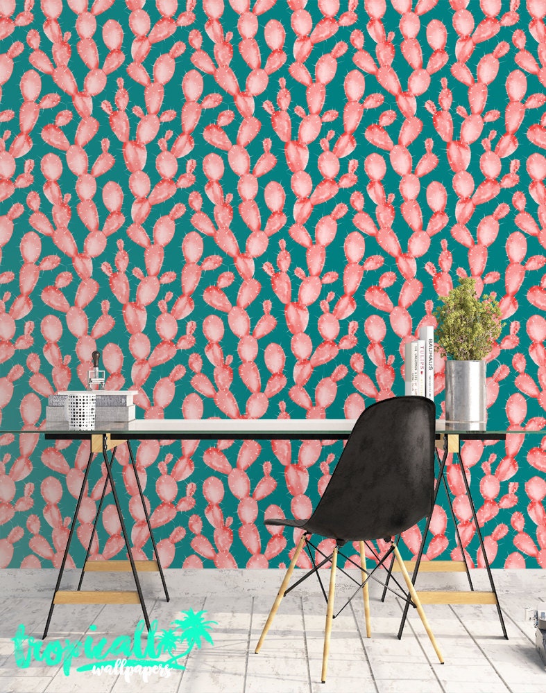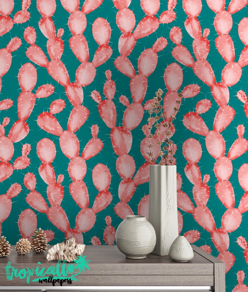 Watercolor Cactus Print Wallpaper: Wall Decal