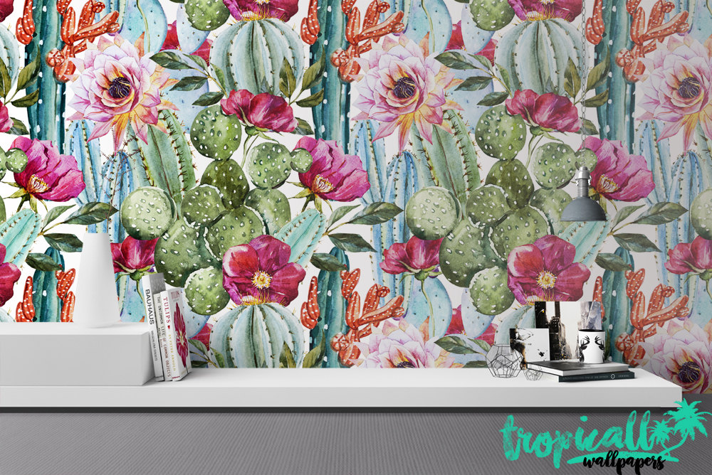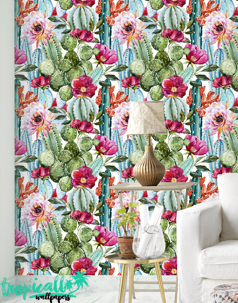 Watercolor Cactus Wallpaper: Floral Wall Decal
