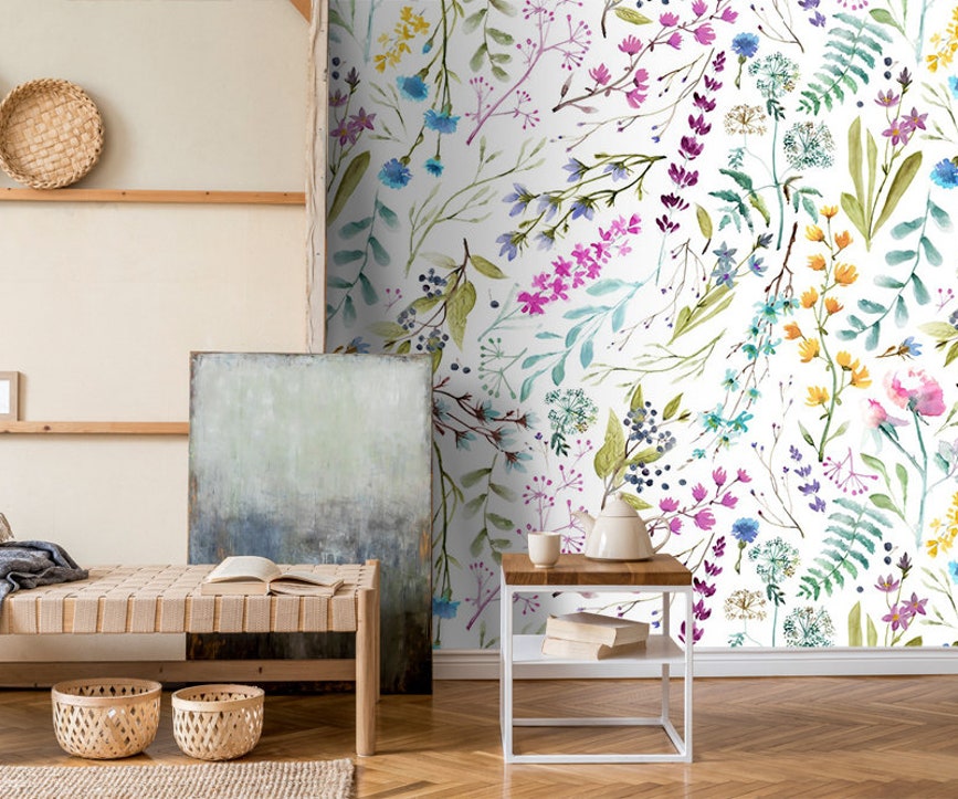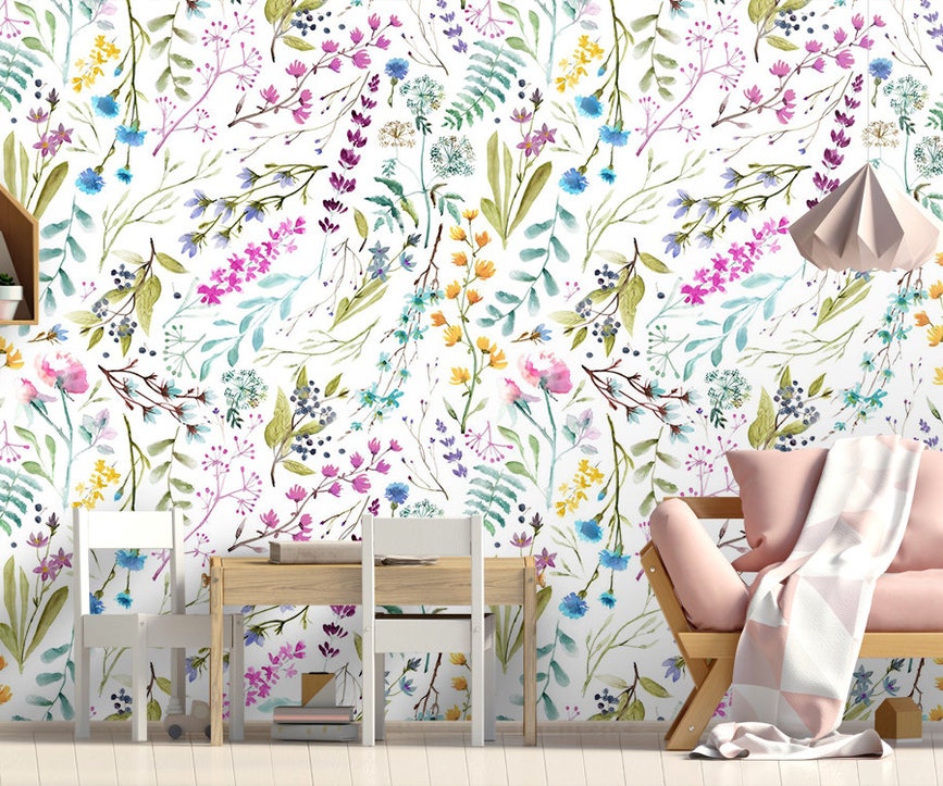 Watercolor Floral Wallpaper Mural