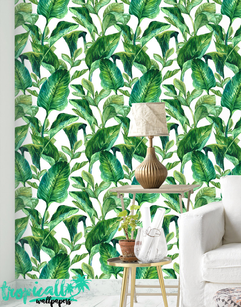 Watercolor Tropical Leaves Wallpaper – Wall Decal