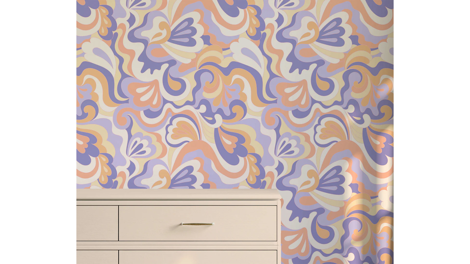 Introducing our vibrant abstract wallpaper, a striking blend of retro-inspired design that enlivens any space. This dynamic pattern features bold, fluid shapes in a delightful palette of peaches, yellows, and purples. The interplay of colors and forms fosters a visually captivating and energetic atmosphere, ideal for infusing a sense of nostalgia into bedrooms, living areas, or any space in need of a lively touch. Meticulously crafted, this wallpaper transforms walls into a vibrant canvas that exudes retro charm.