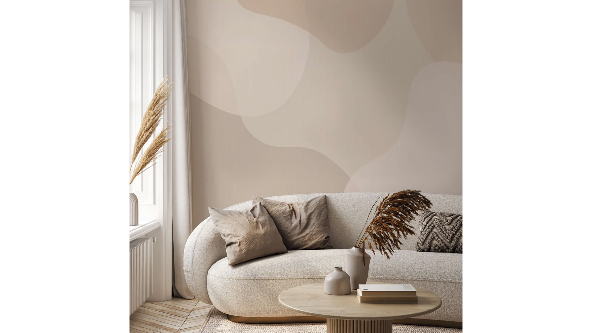 The captivating wallpaper mural features large organic shapes that create a visually striking composition. Enhanced by an etched textural finish, the design strikes a harmonious balance between minimalism and intricate detail.