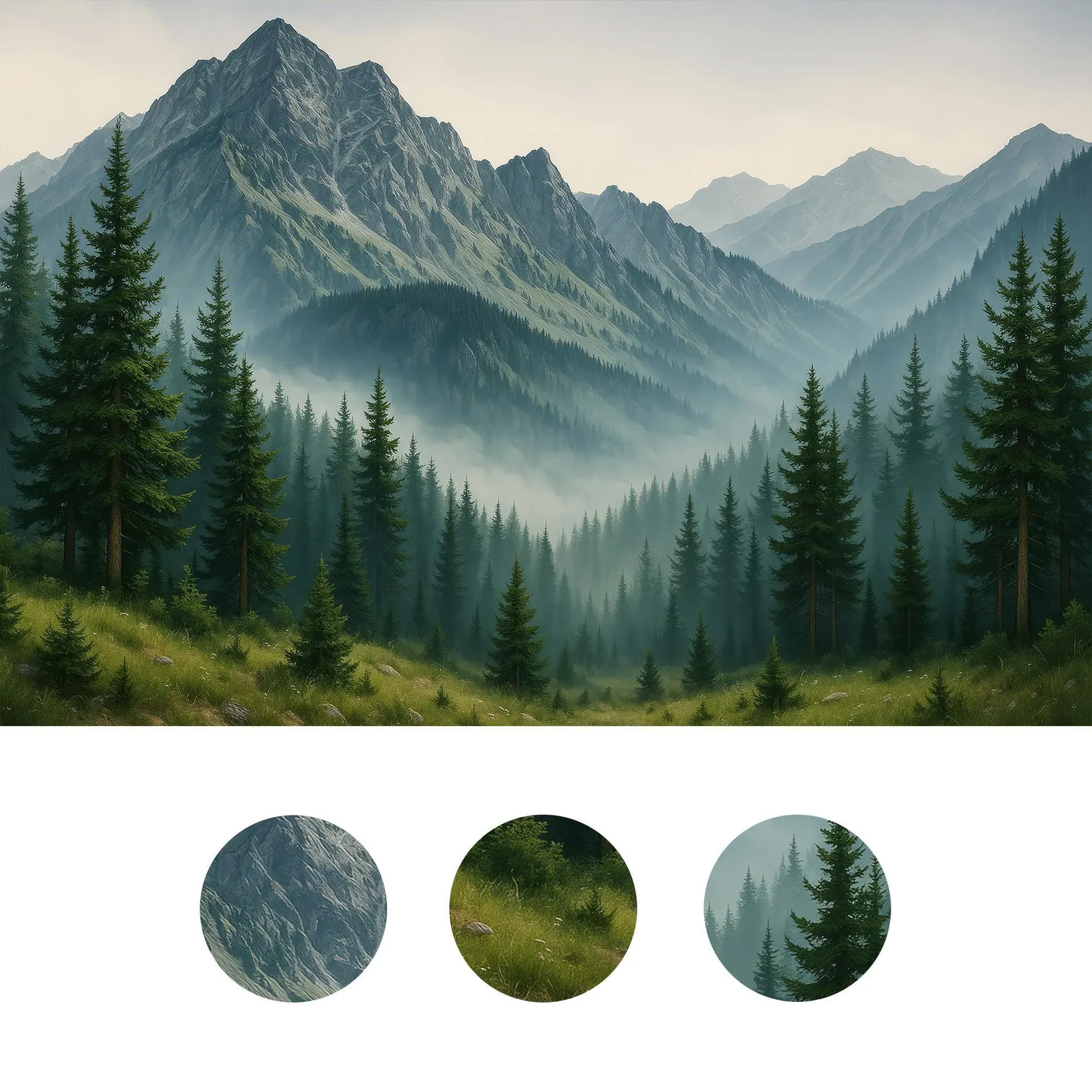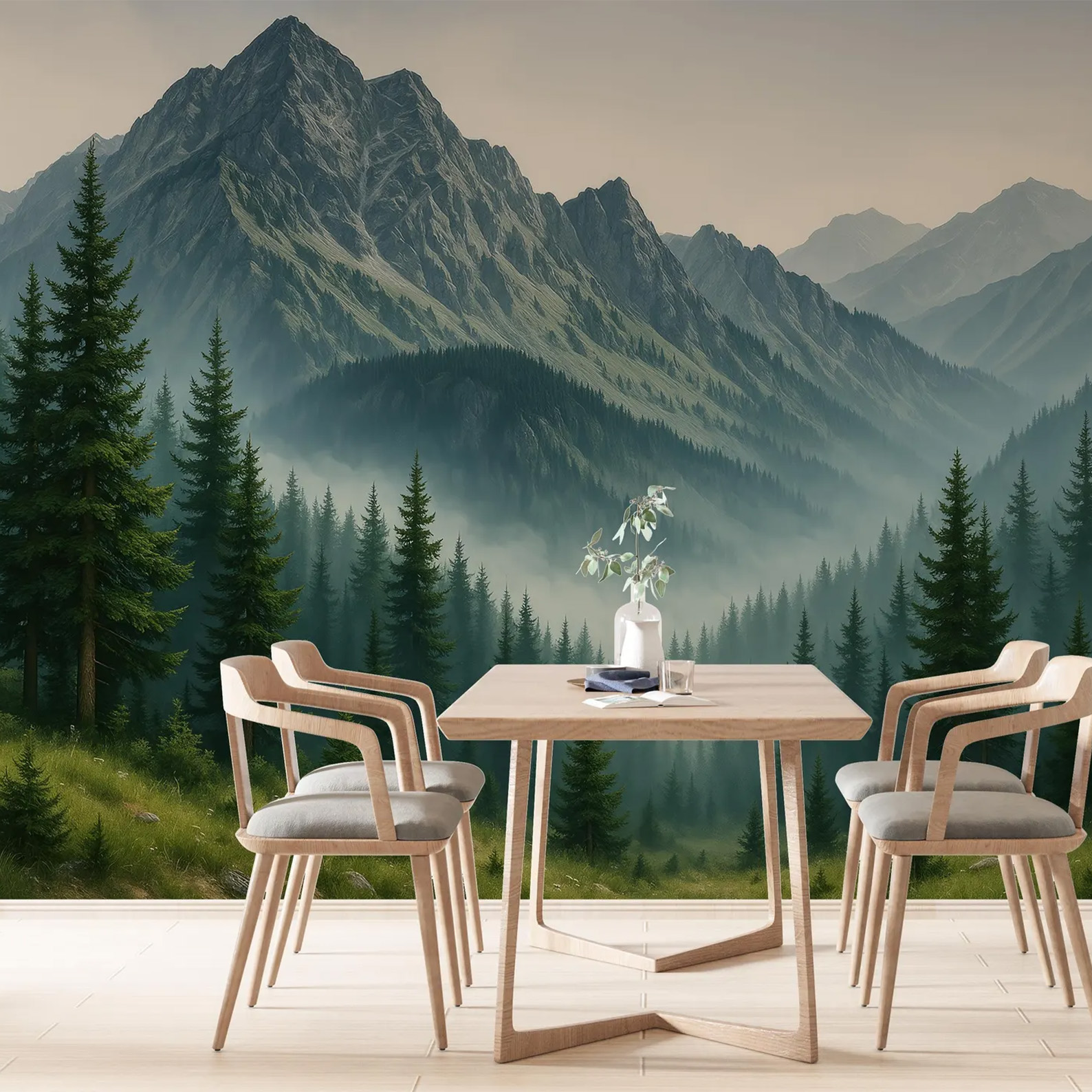 Woodland Wallpaper Mural Peel and Stick, Foggy Forest Wall Paper, Blue Mountain Wall Mural Bedroom, Landscape Nature Accent Wall Realistic