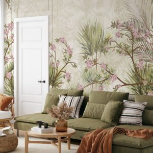 Pink Floral Wallpaper Tropical Flower Wall Mural