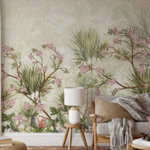 Chinoiserie Crane Wallpaper Tropical Floral Mural