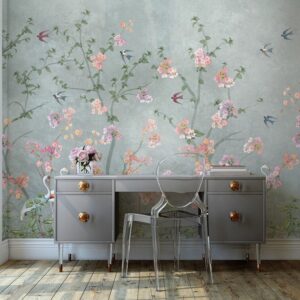 Chinoiserie Wallpaper Crane Heron Floral Mural