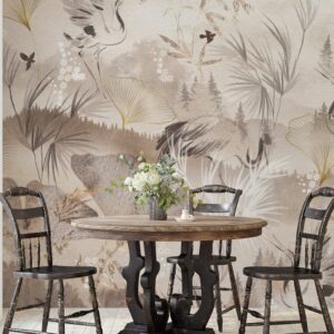 Watercolor Forest Wallpaper Vintage Crane Birds Mural