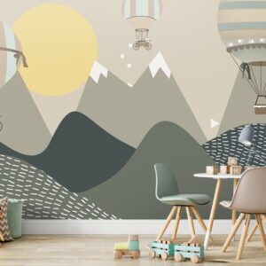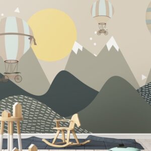 Mountains & Hot Air Balloons Wallpaper Mural Kids Room Decor
