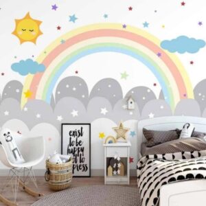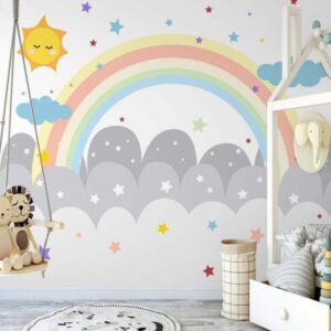 Rainbow Sun Nursery Mural Kids Wallpaper